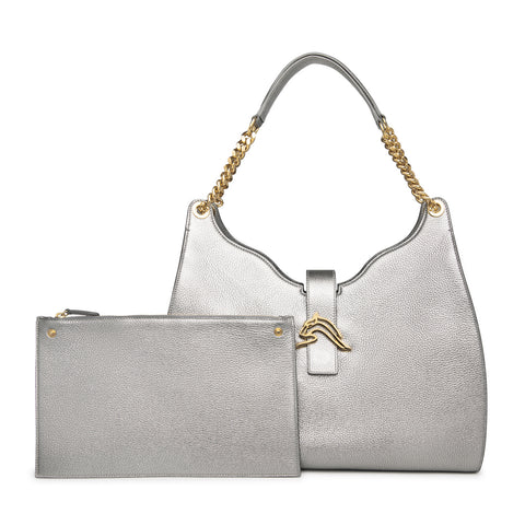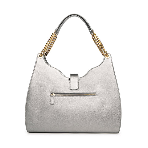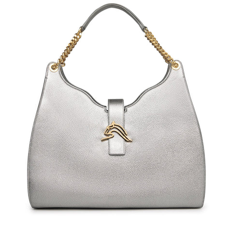 BACKORDEREmpire Cheetah Hobo: Designer Shoulder Bag In Silver Leather
