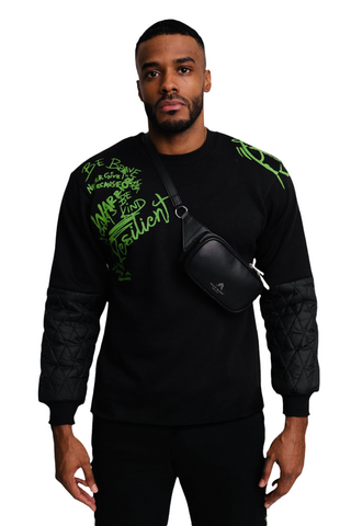 BACKORDERResilient Unisex Crewneck Sweatshirt with Quilted Sleeve, Black