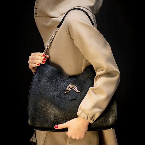 Empire Cheetah Hobo Bag: Designer Shoulder Bag in Black Leather