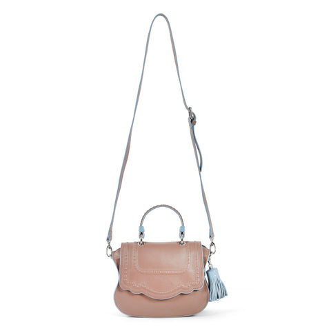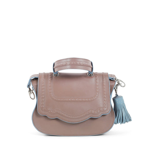 An update to our Audrey Crossbody, the Discrete collection uses a silicone injection technique to create a subtle illusion of studs under the surface of the leather. The result is a polish look for this designer crossbody bag collection.
