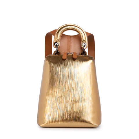 Racer Metallic Mini: Women's Designer Backpack in Gold Leather